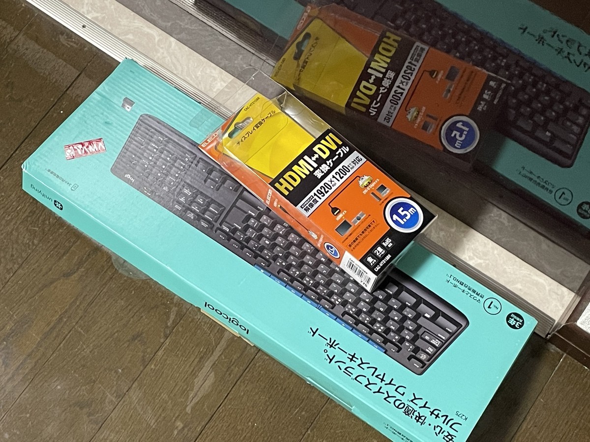 HDMIからDVIへの変換ケーブルと、キーボードを買い、無事にセットアップまで終えることが出来ました。